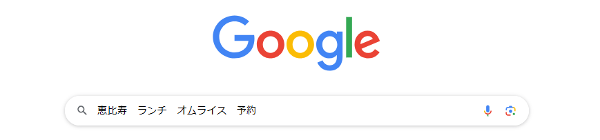例「恵比寿 インドカレー 予約」「恵比寿 ランチ オムライス 予約」など