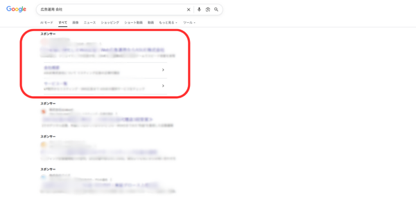 上部に出てきた広告はとりあえず押してみようというユーザーの心理が働きやすく、クリック数が増えることで無駄にコストがかかってしまうことが懸念されます。